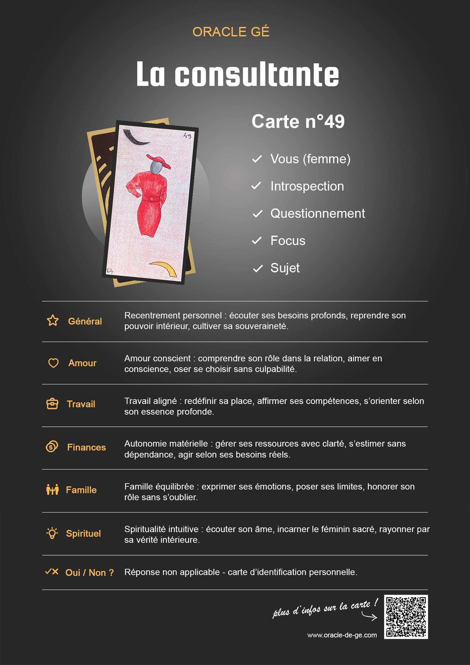 Signification La consultante - Carte n°49 dans l'Oracle Gé