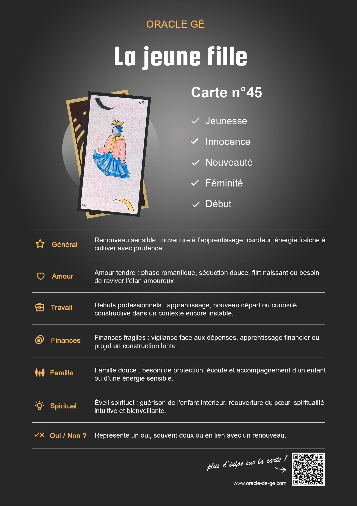 Signification La jeune fille - Carte n°45 dans l'Oracle Gé