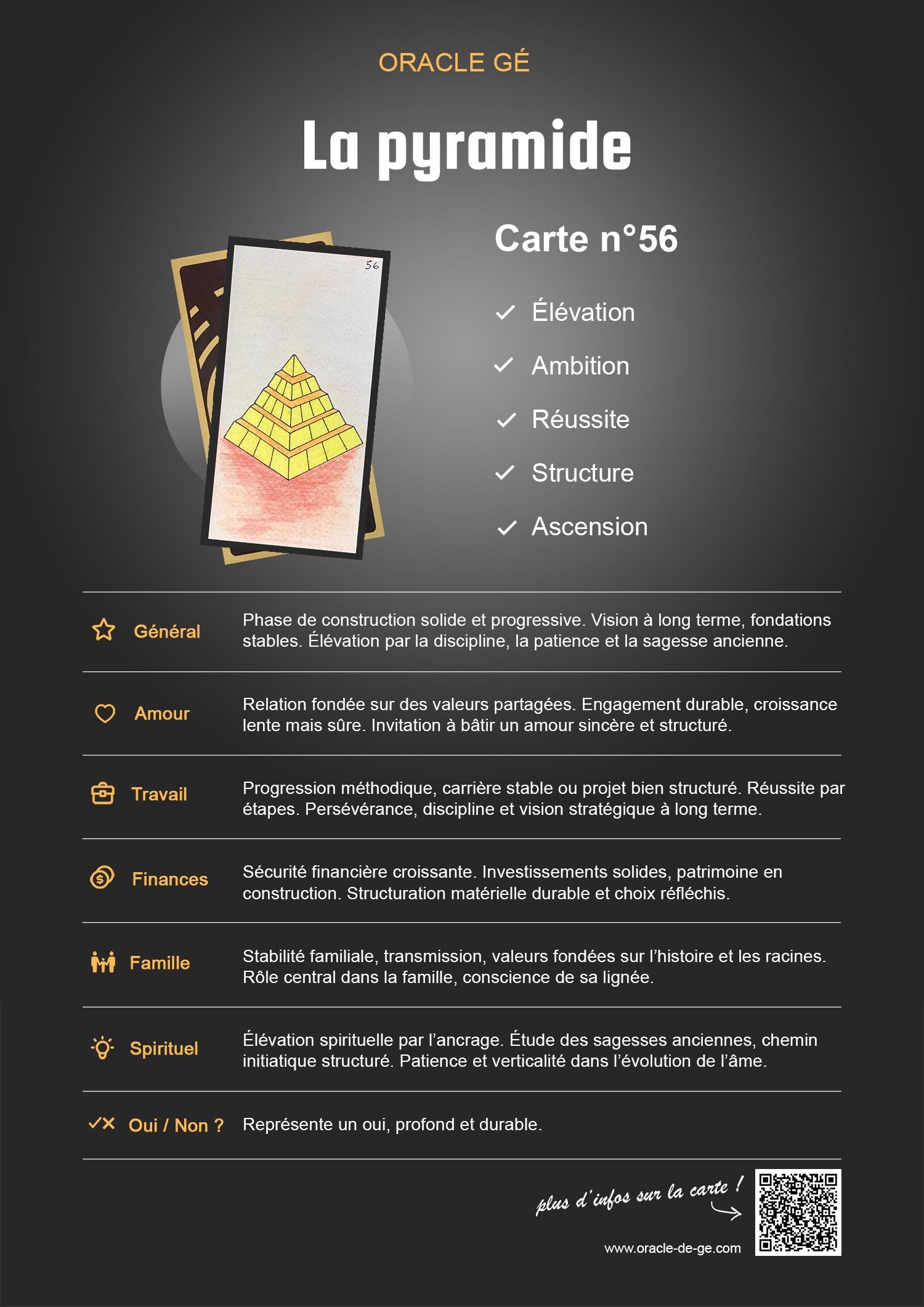 Fiche récapitulative des significations de la carte n°56 La Pyramide dans l'Oracle Gé