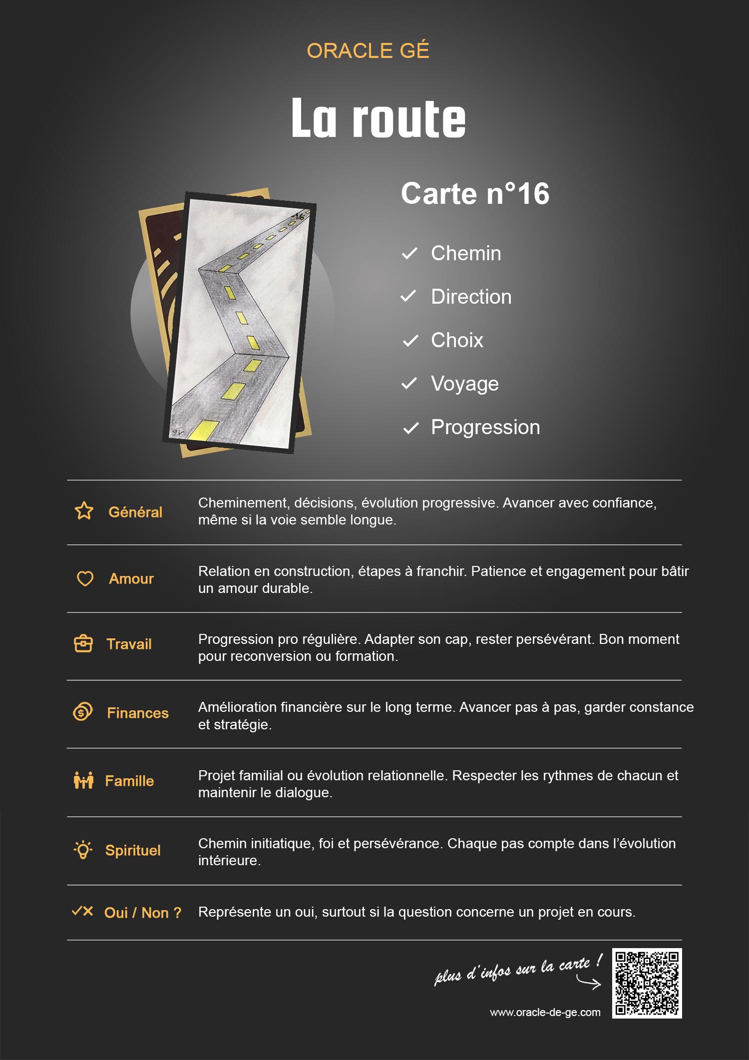 Signification La route - Carte n°16 dans l'Oracle Gé