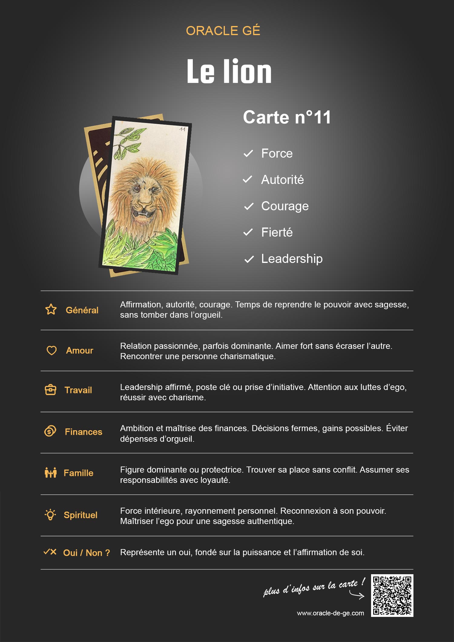 Au travail, Le Lion est une carte de réussite, de pouvoir et d’autorité.