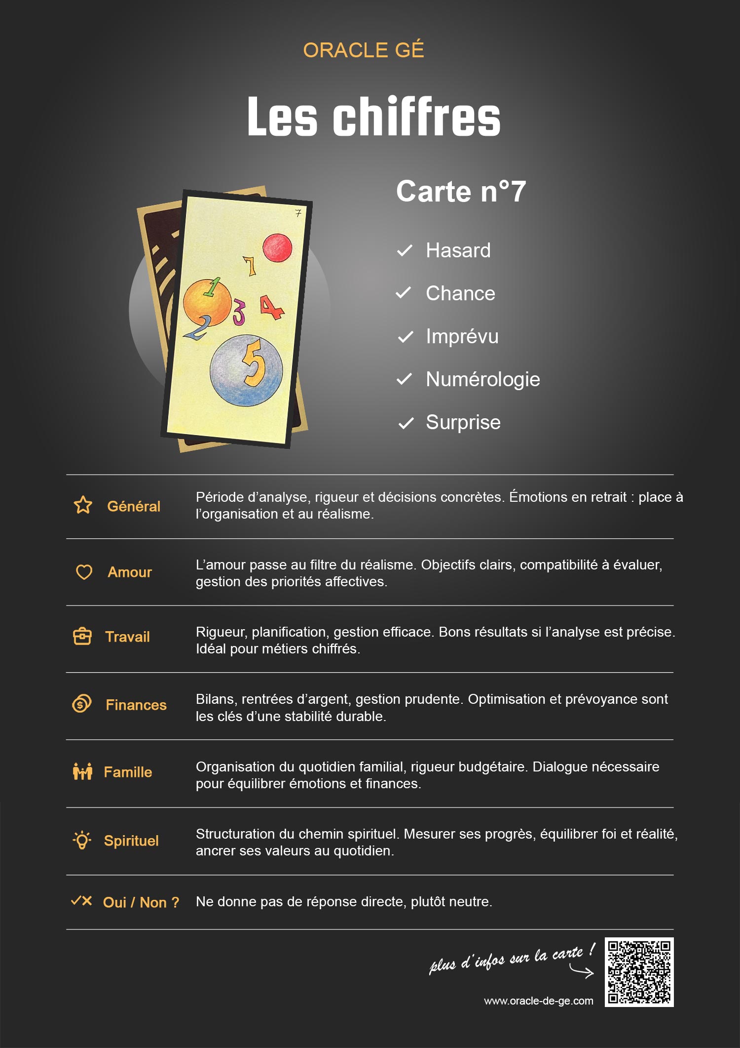 Fiche récapitulative des significations de la carte n°7 Les Chiffres dans l'Oracle Gé
