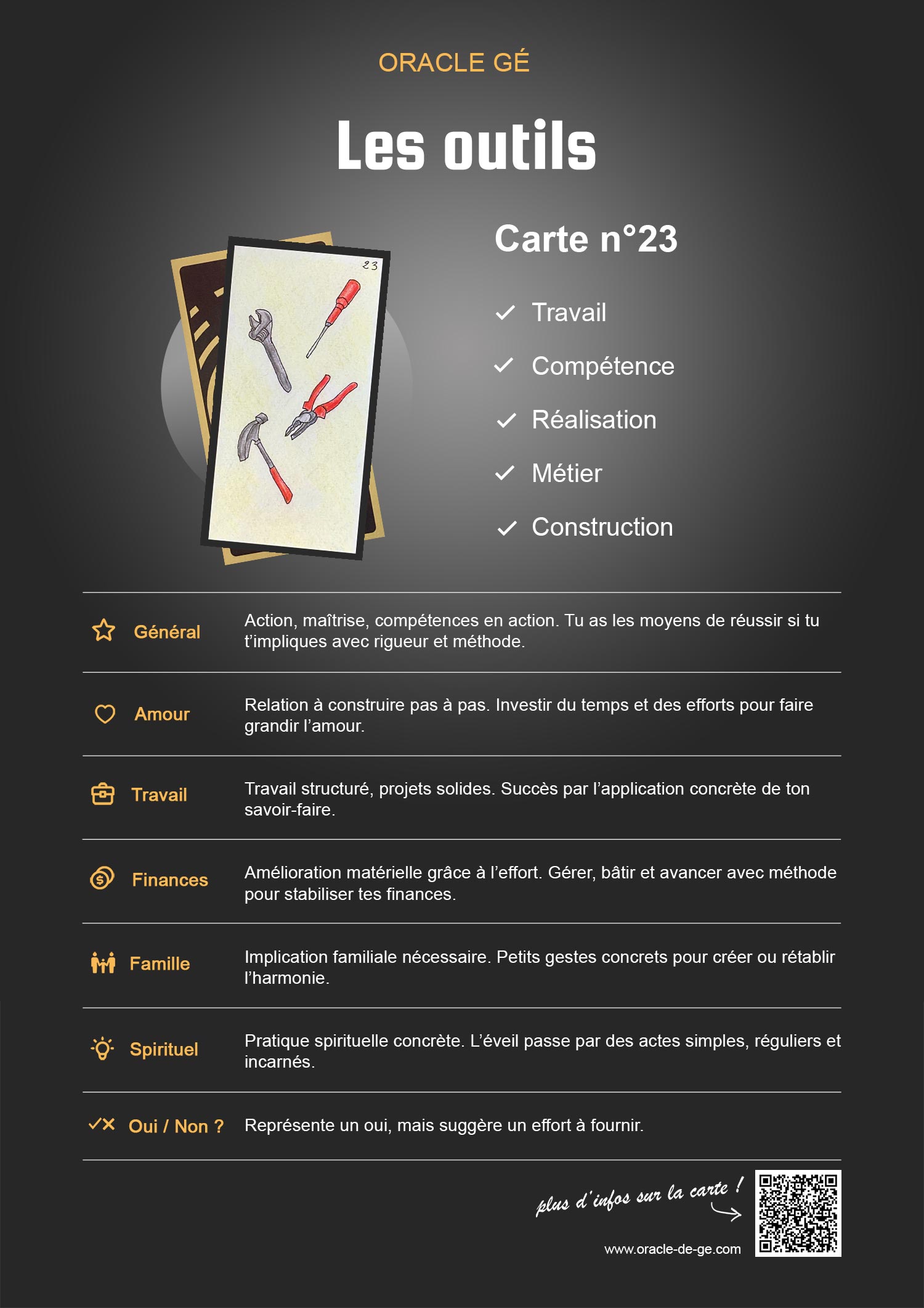 Signification Les outils - Carte n°23 dans l'Oracle Gé