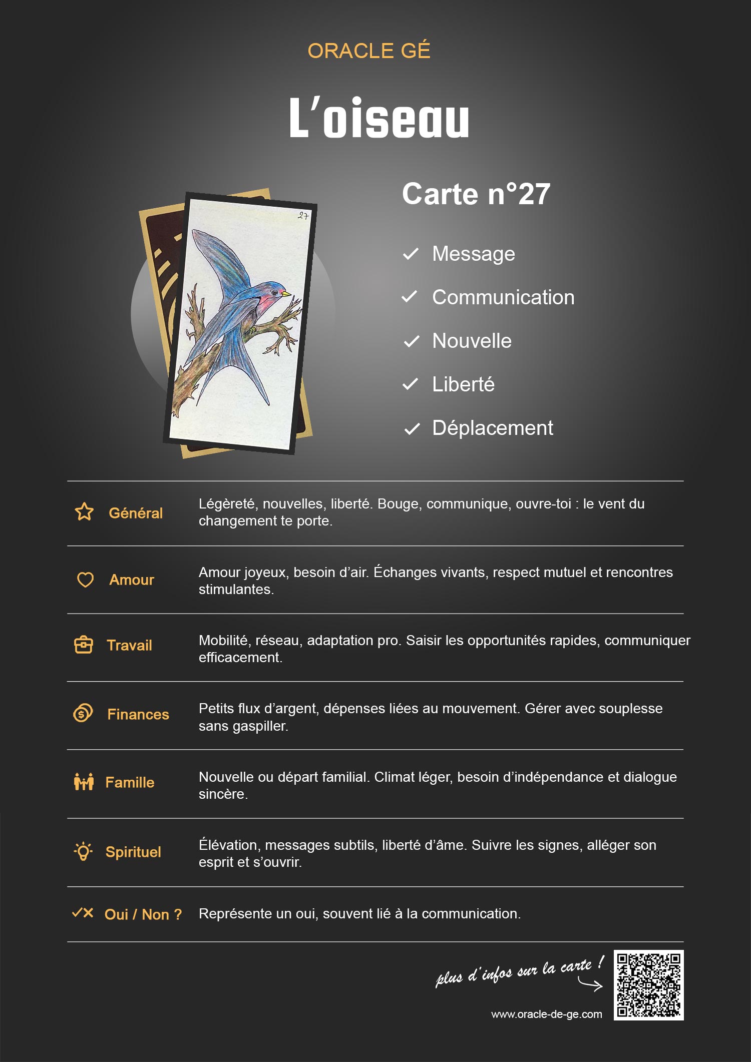 Associations de cartes avec L’oiseau de l'Oracle Gé